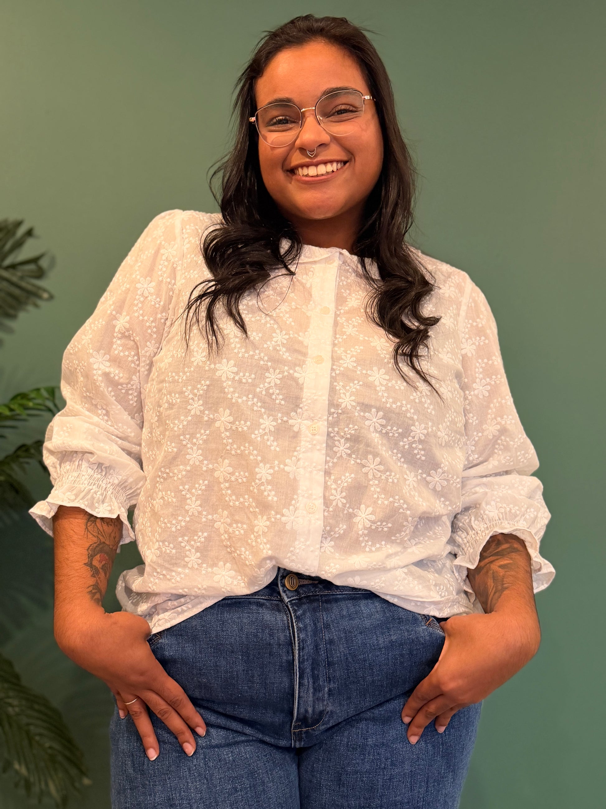 Camisa Branca Bordados Plus
