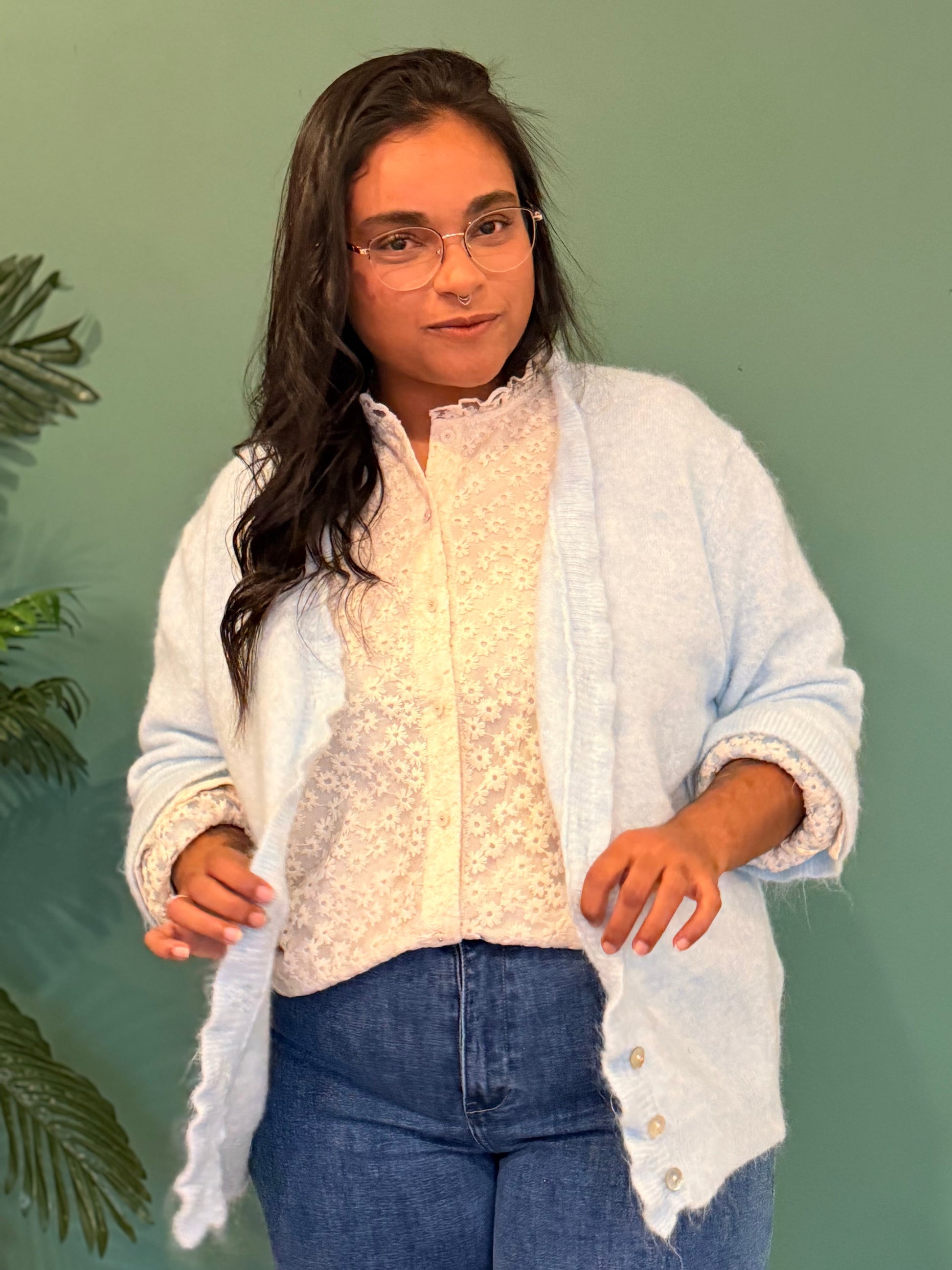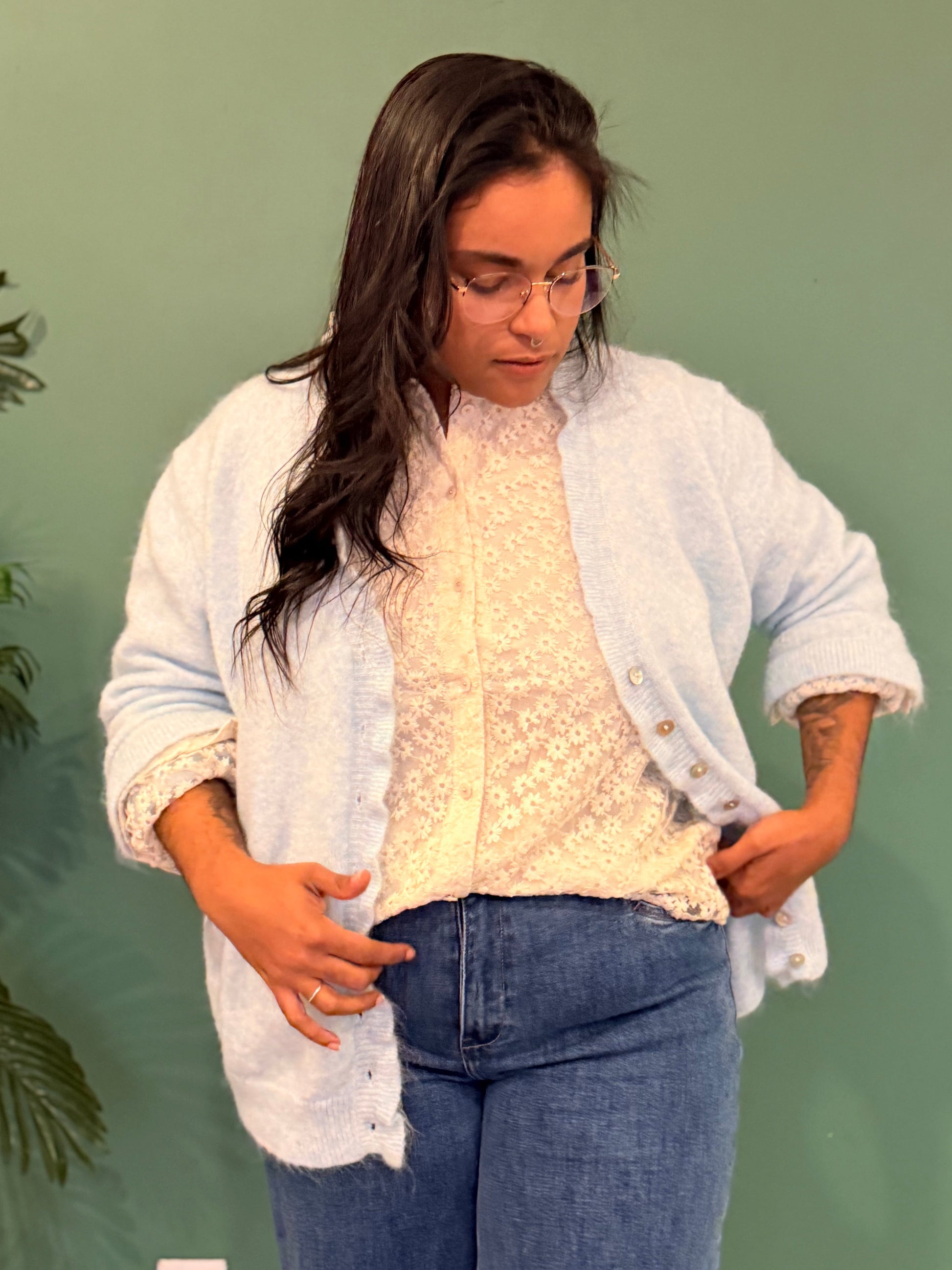 CARDIGÃ AZUL COM BOTÕES PÉROLAS
