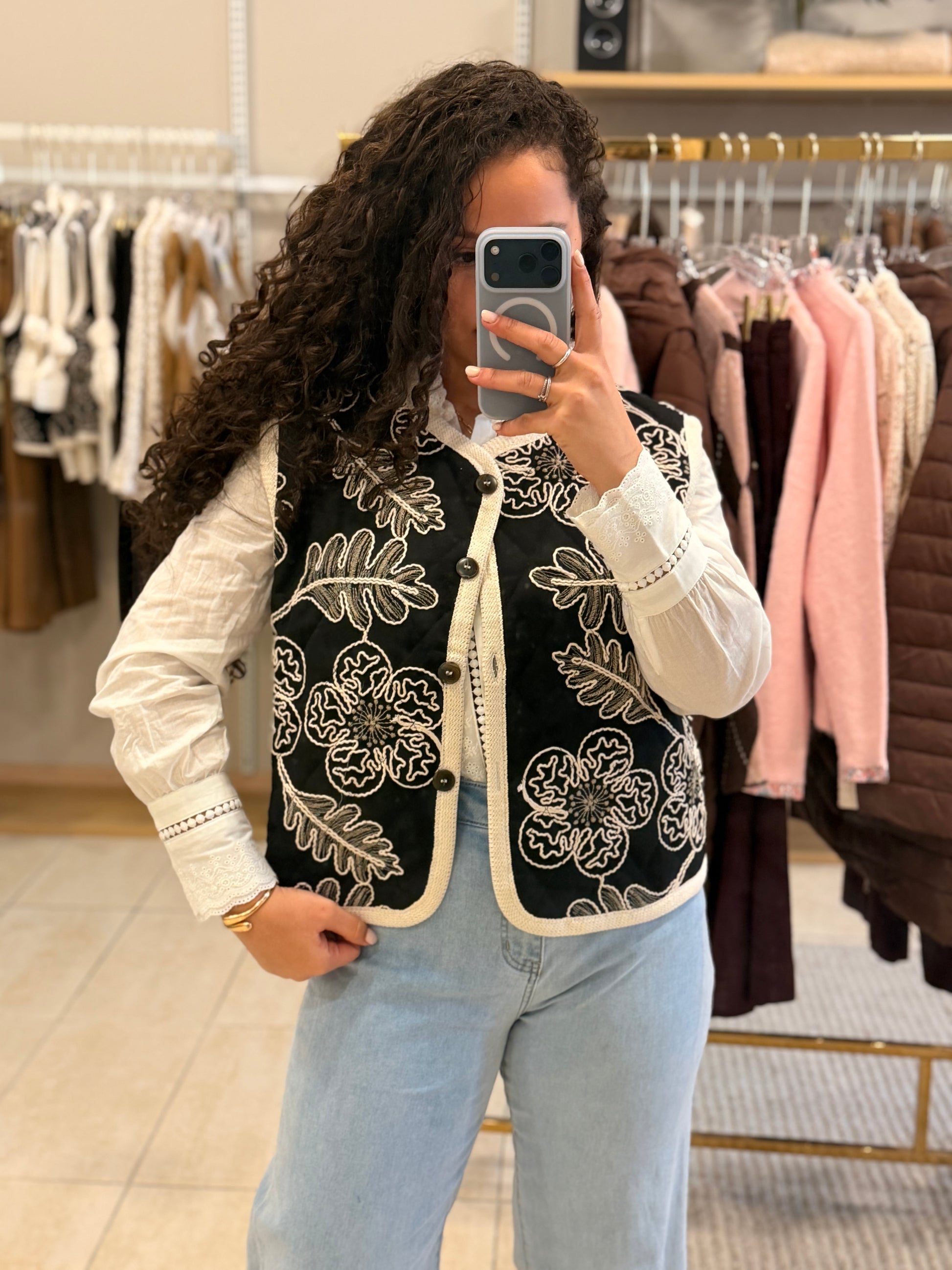 Colete Preto Bordado Creme